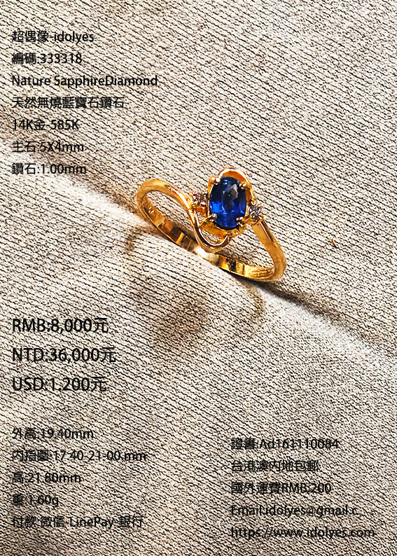 天然無燒藍寶石戒指 |