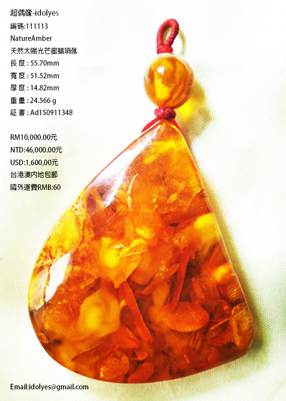 (1) 正宗天然老坑蜜蜡,手工雕刻,絕無人工烤色加工,有合格證書認證,