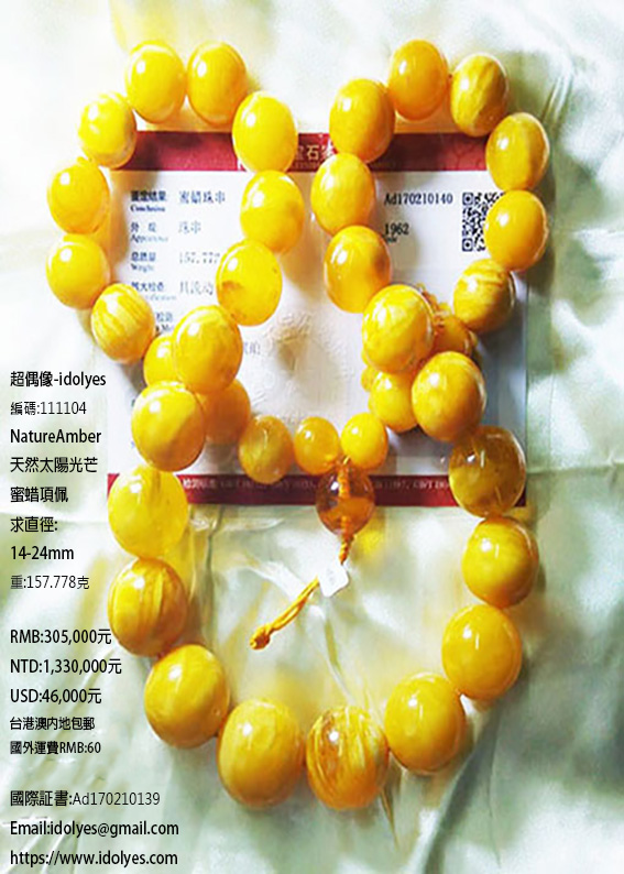 (1) 正宗天然老坑蜜蜡,手工雕刻,絕無人工烤色加工,有合格證書認證,