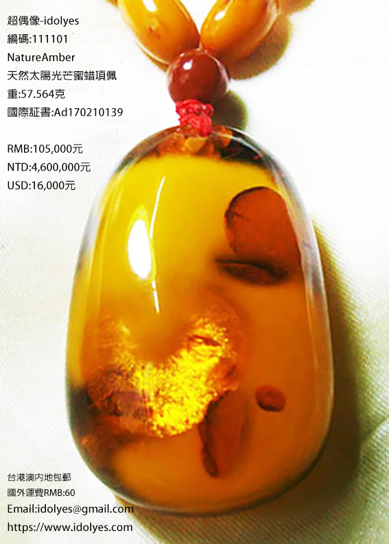 (1) 正宗天然老坑蜜蜡,手工雕刻,絕無人工烤色加工,有合格證書認證,